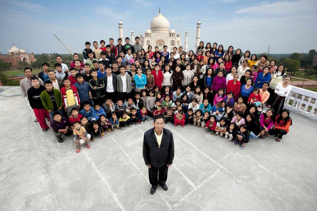 Ziona nació en 1945 y fue líder de una comunidad local llamada Chana Pawl. El grupo practica la poligamia y promueve un estilo de vida cooperativo. Según varios medios internacionales, Ziona llegó a convivir con 39 esposas y casi 100 hijos. También se hablaba de decenas de nietos que vivían cerca de la familia.
