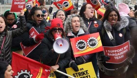 En enero, PSAC anunció votos de huelga para el grupo de la Junta del Tesoro debido a un desacuerdo con el departamento sobre los aumentos salariales propuestos que son superados por la tasa de inflación.