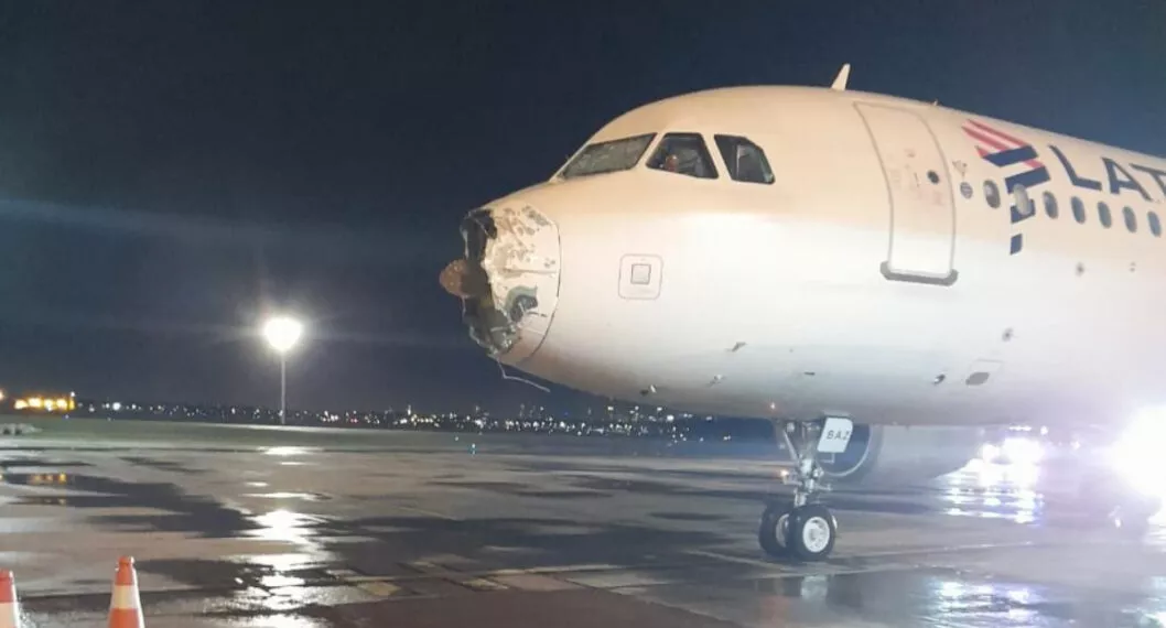 La aeronave también perdió el “morro” o nariz -la parte frontal de su fuselaje- y llegó con el parabrisas destrozado, según reportaron medios locales.