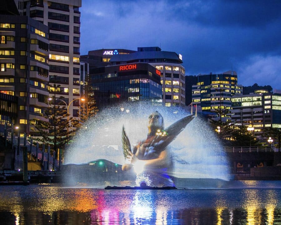 El proyecto da vida a videos que muestran a artistas maoríes y del Pacífico a través de una pantalla de agua, brindando un espectáculo en medio del lago Ontario.